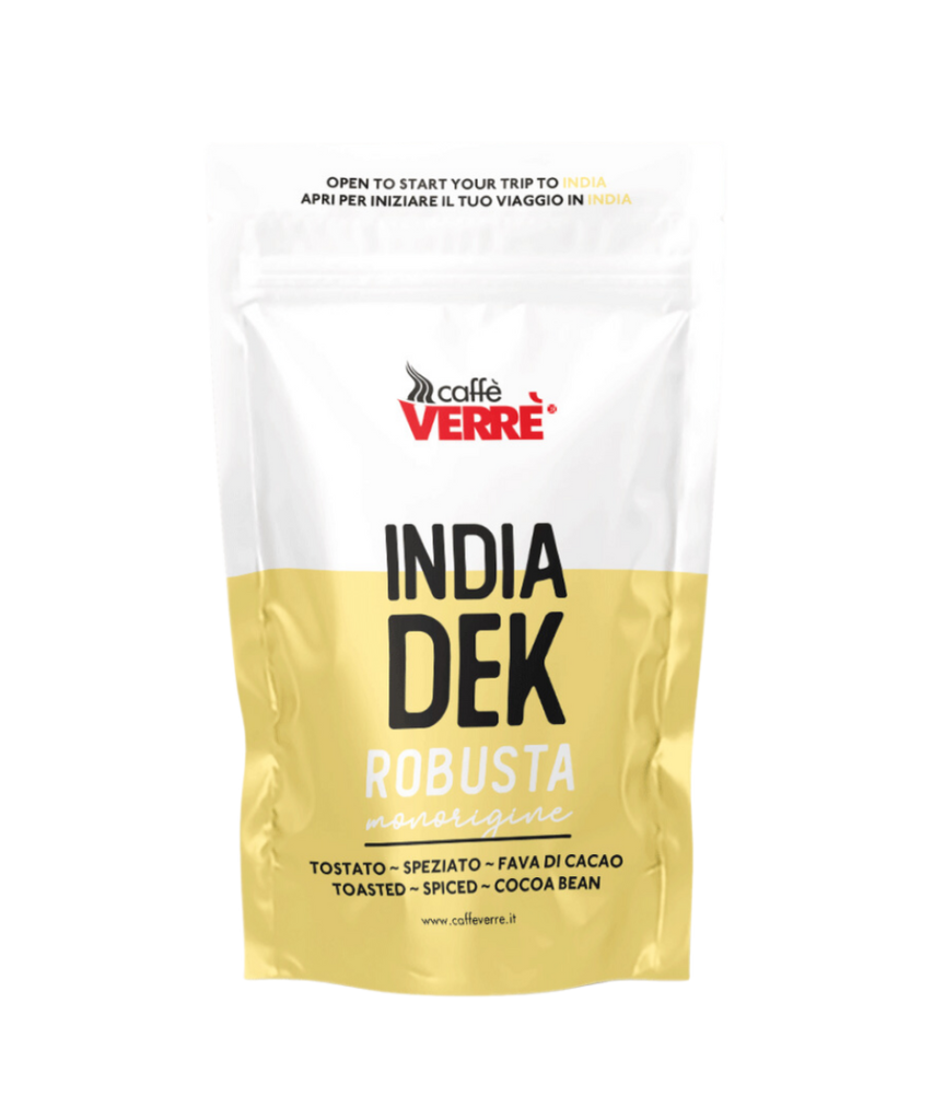Decaffeinated Indian Robusta from Coorg, Chickmagaluru, and Hassan, with a robust flavor profile.