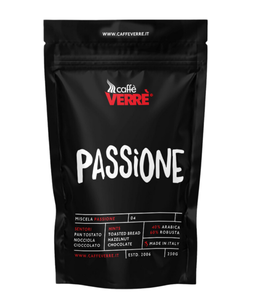 A medium-bodied, sweet blend of 60% Arabica and 40% Robusta with fruity notes and a toasted hazelnut aftertaste.