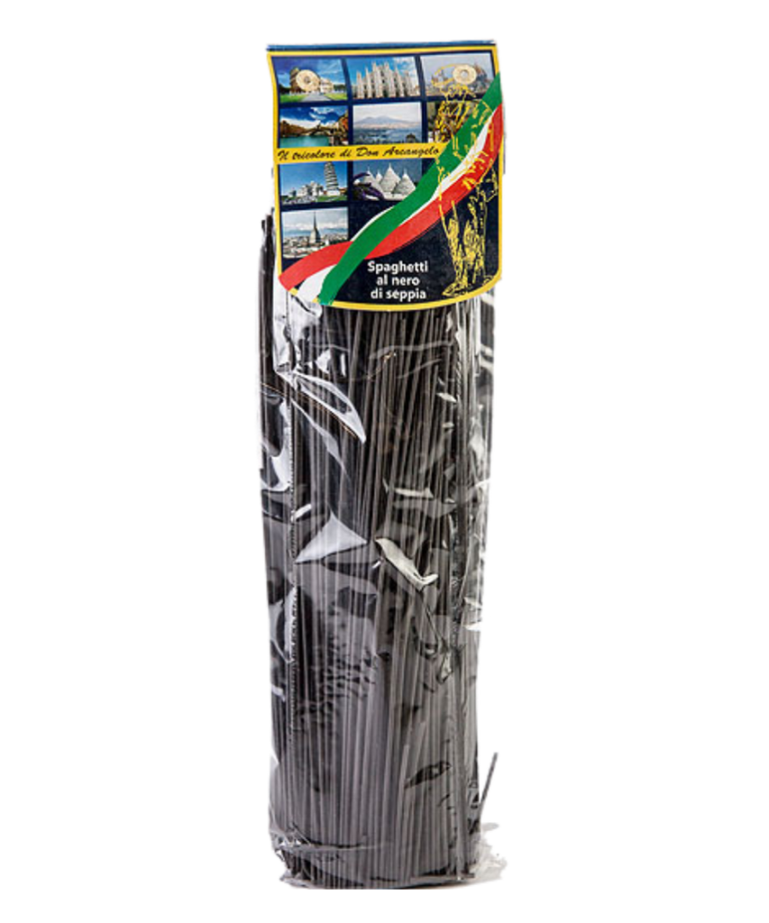 Spaghetti al nero di Seppia features squid ink for a unique flavor and striking appearance.