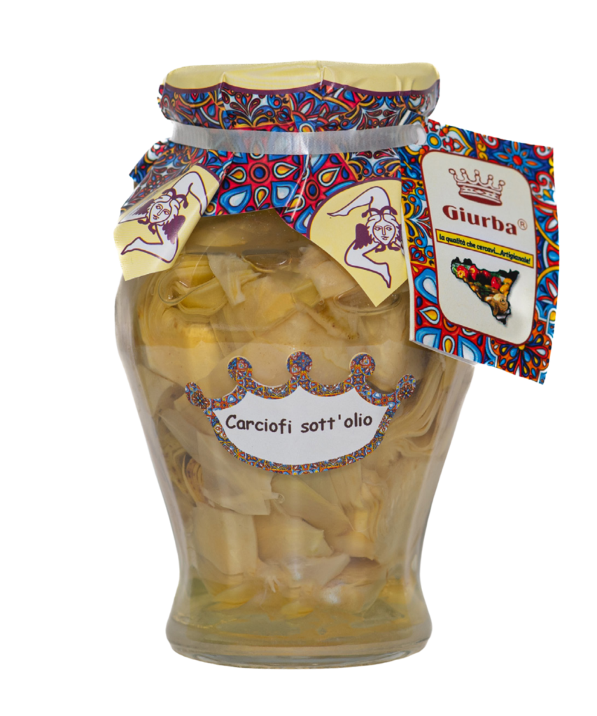 Hand-crafted artichokes preserved with a blend of spices and olive oil, showcasing traditional Italian flavors.