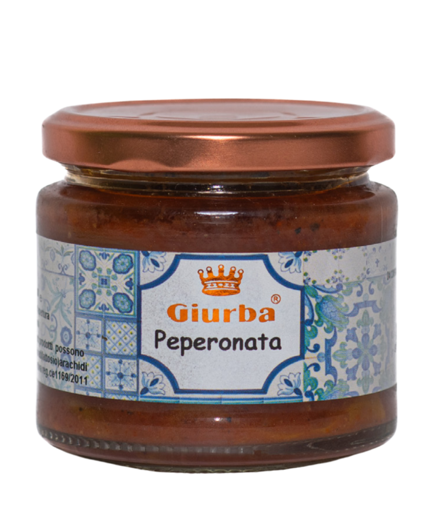 A savory and sweet mix of sautéed bell peppers, onions, and tomatoes, preserved in a flavorful sauce for a delicious Italian classic.