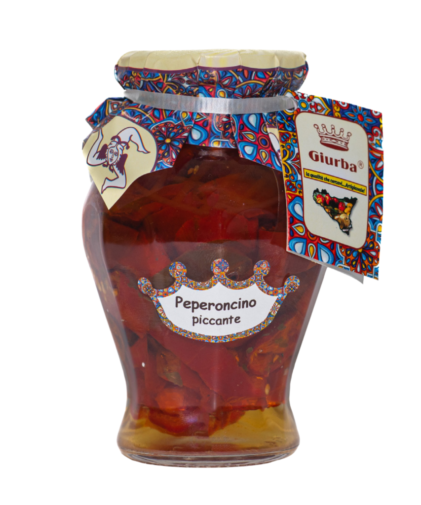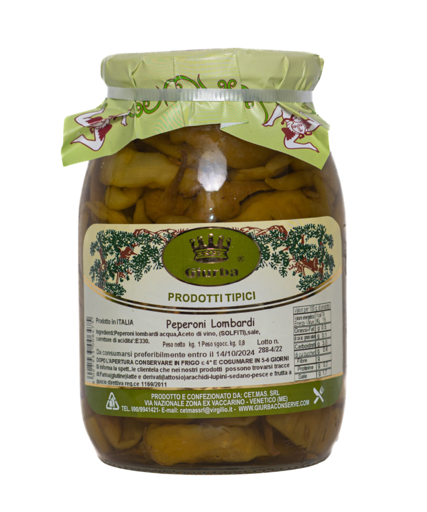 Sweet and tangy Lombardy-style peppers preserved in oil, showcasing a rich flavor and vibrant color.