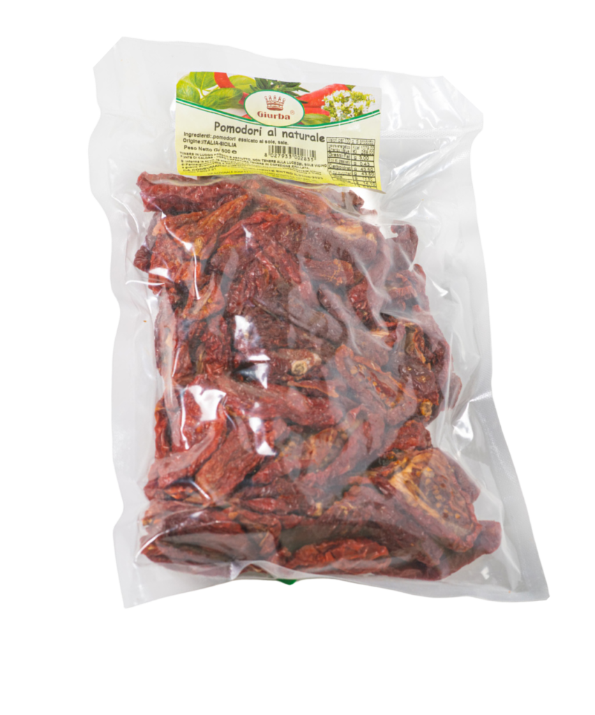 Sun-dried tomatoes in the Aeolian style, infused with aromatic herbs and olive oil, delivering a distinct and vibrant flavor.